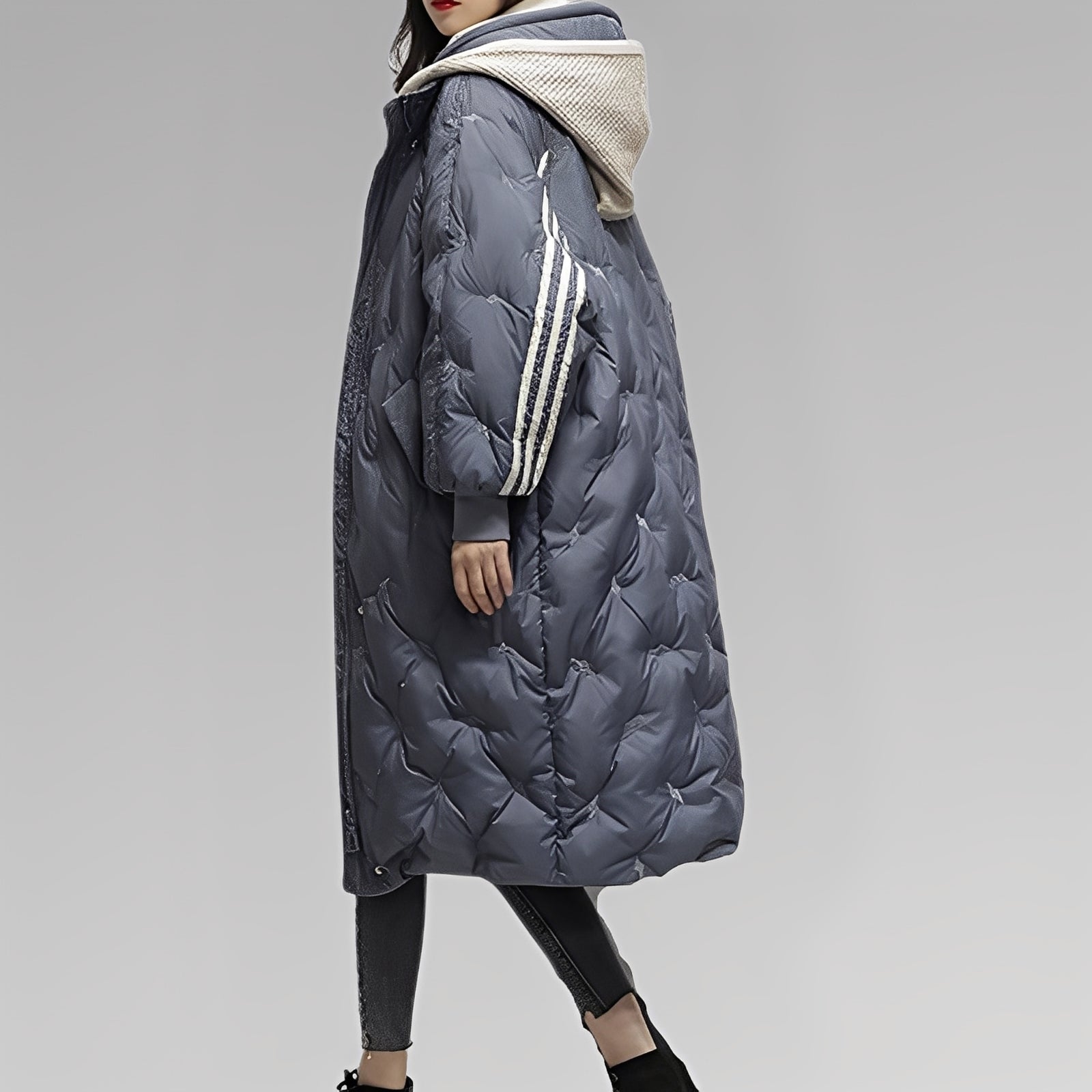 Jachetă lungă pentru dame cu glugă și croială modernă